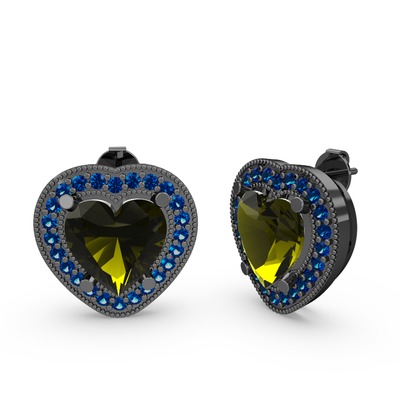 Peridot ve lab safir 925 ayar siyah rodyum kaplama gümüş küpe