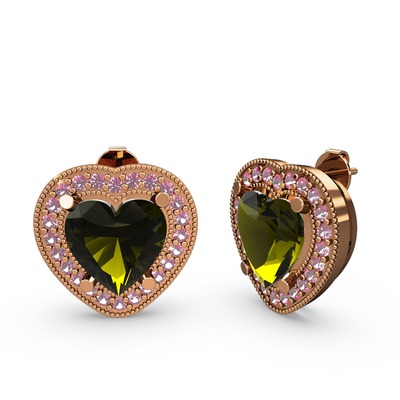 Peridot ve pembe kuvars 8 ayar rose altın küpe