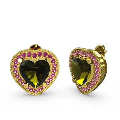 Peridot ve rodolit garnet 14 ayar altın küpe
