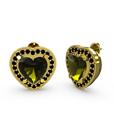 Peridot ve siyah zirkon 925 ayar altın kaplama gümüş küpe