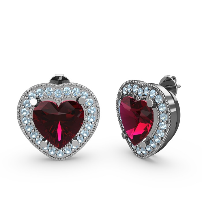 Rodolit garnet ve akuamarin 925 ayar gümüş küpe