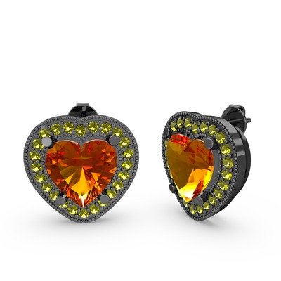 Sitrin ve peridot 925 ayar siyah rodyum kaplama gümüş küpe