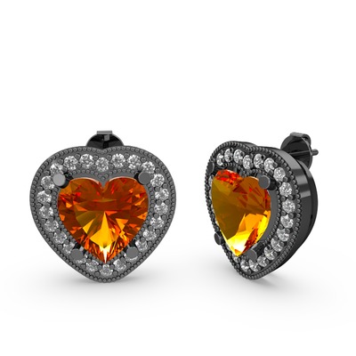 Sitrin ve pırlanta 925 ayar siyah rodyum kaplama gümüş küpe (0.528 karat)