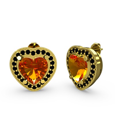 Sitrin ve siyah zirkon 8 ayar altın küpe