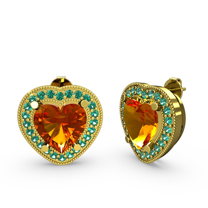 Sitrin ve yeşil kuvars 925 ayar altın kaplama gümüş küpe
