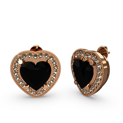 Siyah zirkon ve dumanlı kuvars 14 ayar rose altın küpe