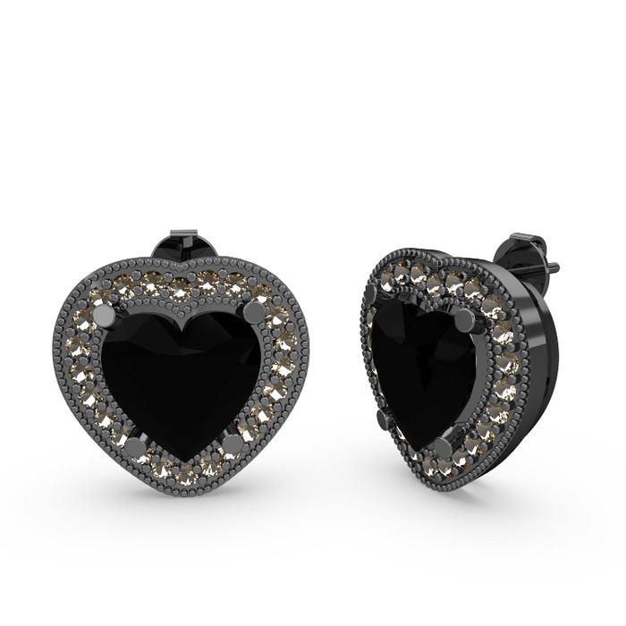Siyah zirkon ve dumanlı kuvars 925 ayar siyah rodyum kaplama gümüş küpe