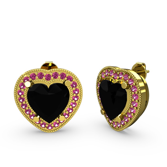 Siyah zirkon ve rodolit garnet 18 ayar altın küpe