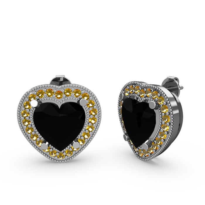 Siyah zirkon ve sitrin 18 ayar beyaz altın küpe