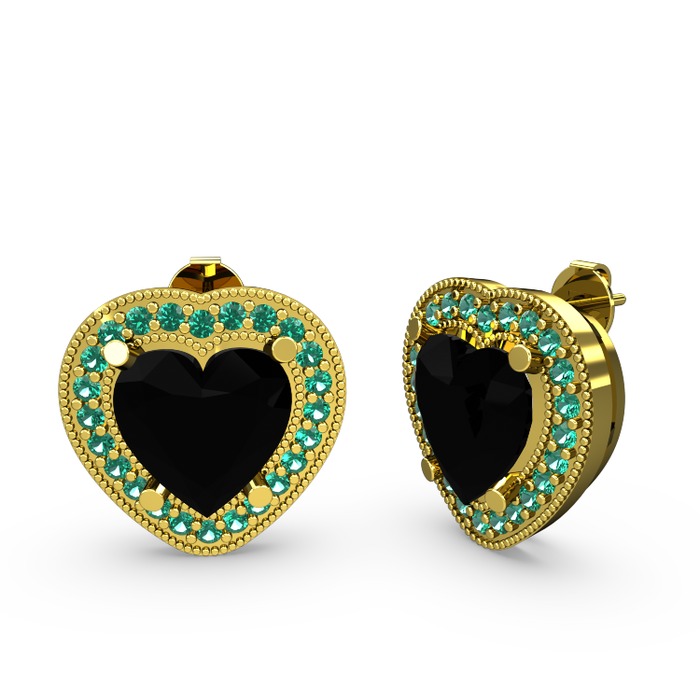 Siyah zirkon ve yeşil kuvars 18 ayar altın küpe