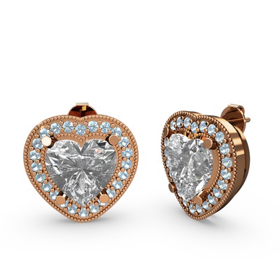 Swarovski ve akuamarin 8 ayar rose altın küpe