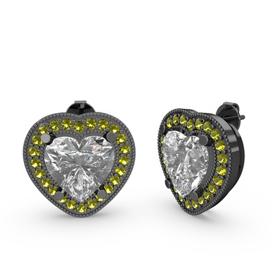 Swarovski ve peridot 925 ayar siyah rodyum kaplama gümüş küpe