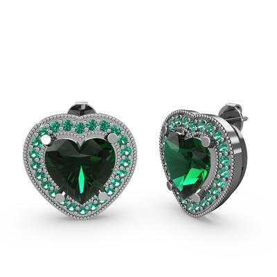 Yeşil kuvars 14 ayar beyaz altın küpe