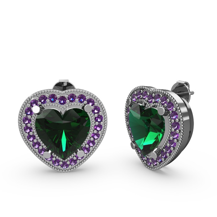 Yeşil kuvars ve ametist 14 ayar beyaz altın küpe