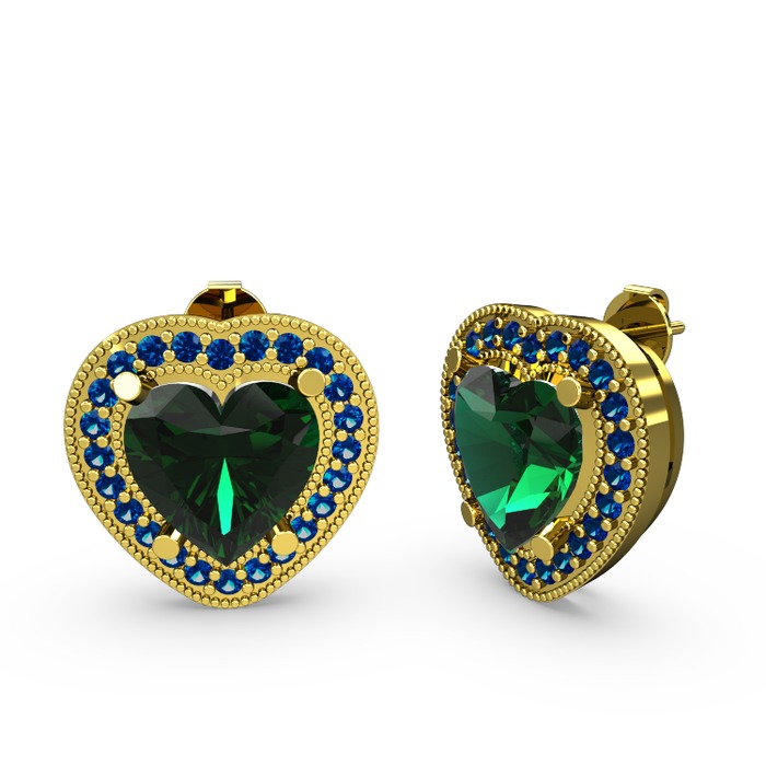 Yeşil kuvars ve lab safir 8 ayar altın küpe