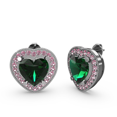 Yeşil kuvars ve pembe kuvars 14 ayar beyaz altın küpe