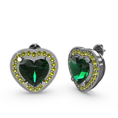 Yeşil kuvars ve peridot 14 ayar beyaz altın küpe