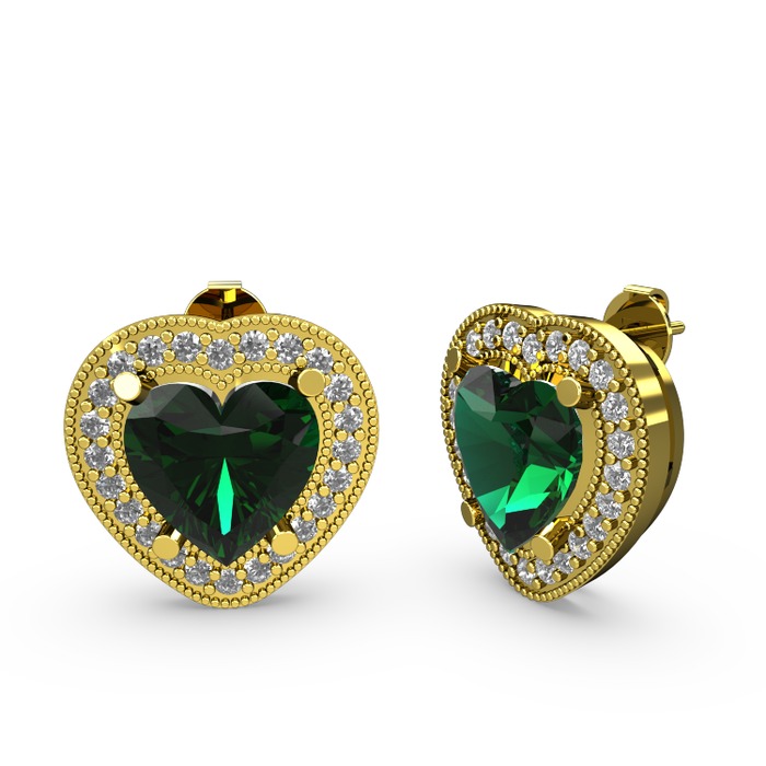 Yeşil kuvars ve pırlanta 8 ayar altın küpe (0.528 karat)