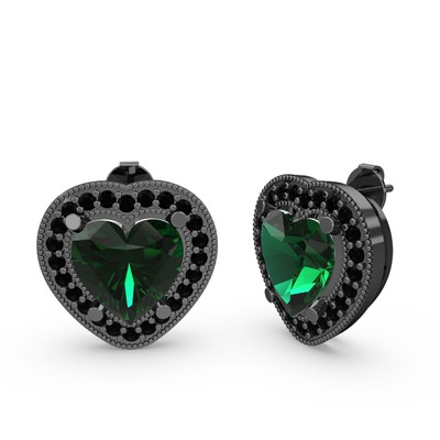 Yeşil kuvars ve siyah zirkon 925 ayar siyah rodyum kaplama gümüş küpe