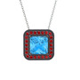 Akuamarin ve garnet 925 ayar siyah rodyum kaplama gümüş kolye (40 cm gümüş rolo zincir)