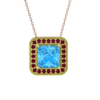 Akuamarin ve kök yakut 18 ayar altın kolye (40 cm rose altın rolo zincir)