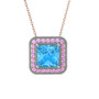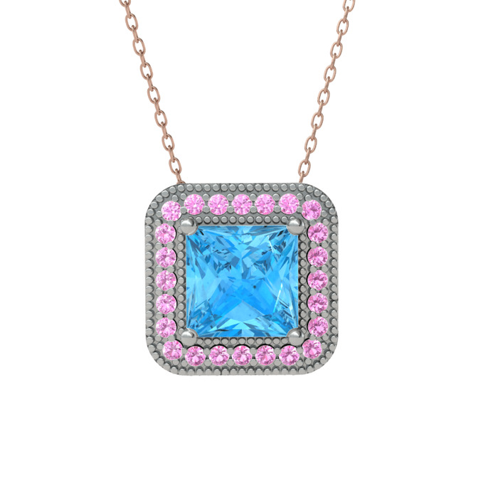 Akuamarin ve pembe kuvars 18 ayar beyaz altın kolye (40 cm rose altın rolo zincir)