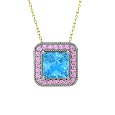 Akuamarin ve pembe kuvars 925 ayar gümüş kolye (40 cm altın rolo zincir)