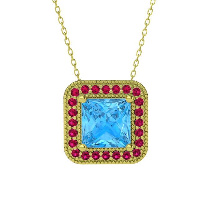 Akuamarin ve rodolit garnet 8 ayar altın kolye (40 cm altın rolo zincir)