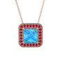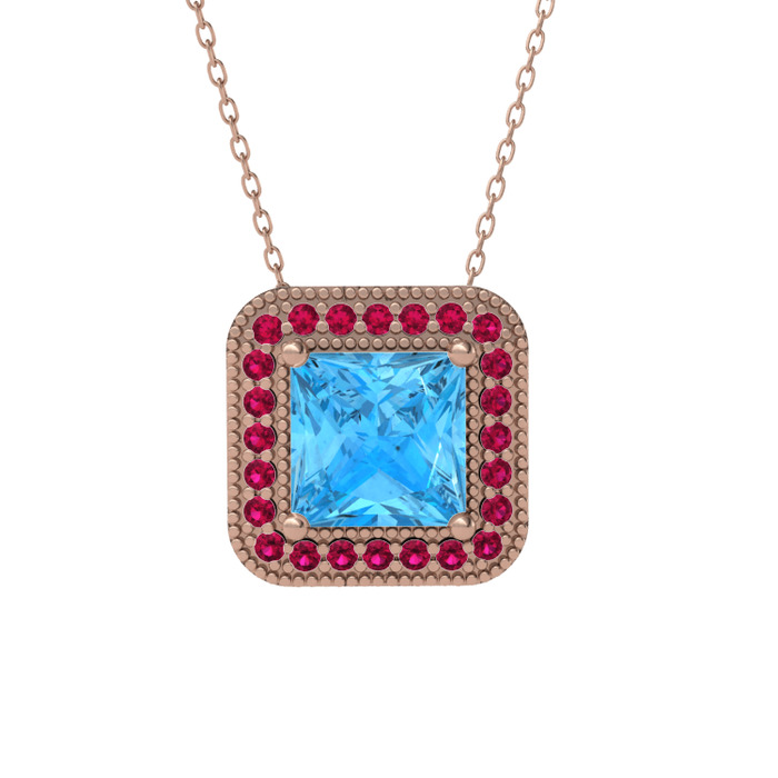 Akuamarin ve rodolit garnet 8 ayar rose altın kolye (40 cm rose altın rolo zincir)