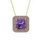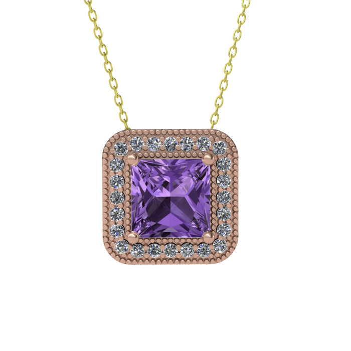 Ametist ve beyaz zirkon 14 ayar rose altın kolye (40 cm altın rolo zincir)