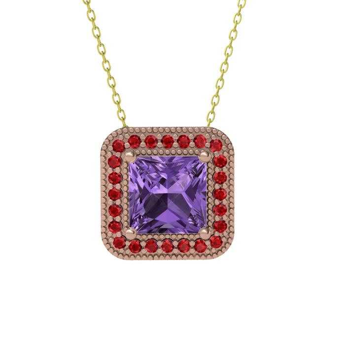 Ametist ve garnet 8 ayar rose altın kolye (40 cm altın rolo zincir)
