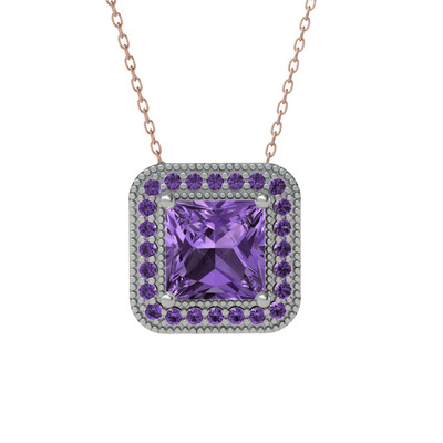 Ametist 925 ayar gümüş kolye (40 cm rose altın rolo zincir)