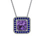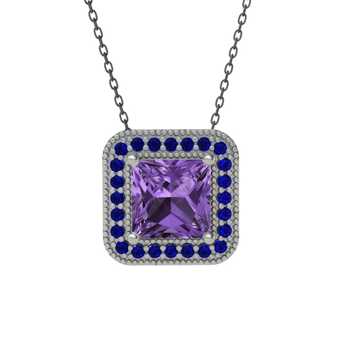 Ametist ve lab safir 18 ayar beyaz altın kolye (40 cm gümüş rolo zincir)