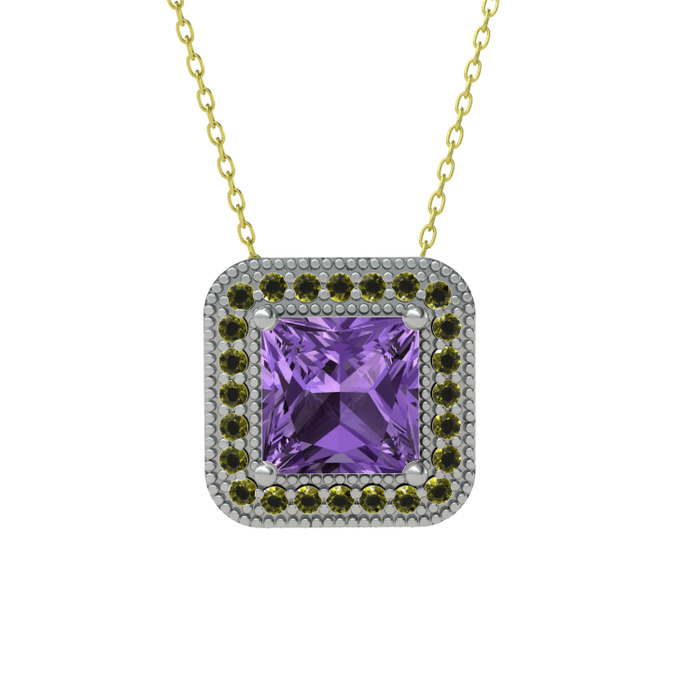 Ametist ve peridot 8 ayar beyaz altın kolye (40 cm altın rolo zincir)