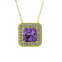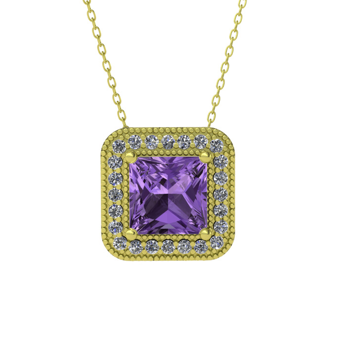 Ametist ve pırlanta 925 ayar altın kaplama gümüş kolye (0.264 karat, 40 cm altın rolo zincir)