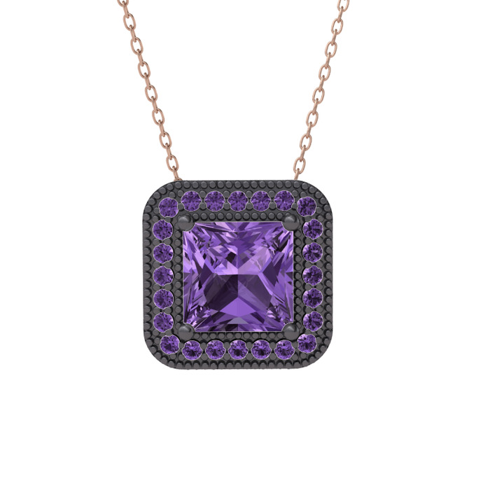 Ametist 925 ayar siyah rodyum kaplama gümüş kolye (40 cm gümüş rolo zincir)