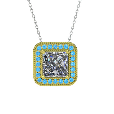 Beyaz zirkon ve akuamarin 18 ayar altın kolye (40 cm gümüş rolo zincir)