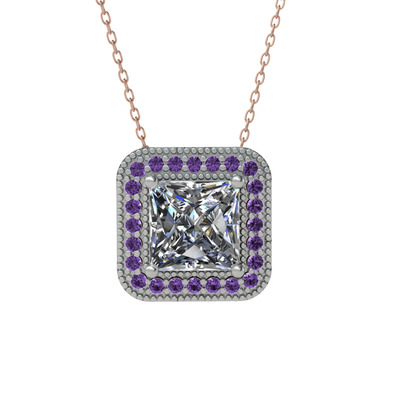 Beyaz zirkon ve ametist 14 ayar beyaz altın kolye (40 cm gümüş rolo zincir)