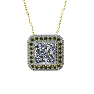 Beyaz zirkon ve peridot 18 ayar beyaz altın kolye (40 cm gümüş rolo zincir)