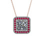 Beyaz zirkon ve rodolit garnet 8 ayar beyaz altın kolye (40 cm gümüş rolo zincir)