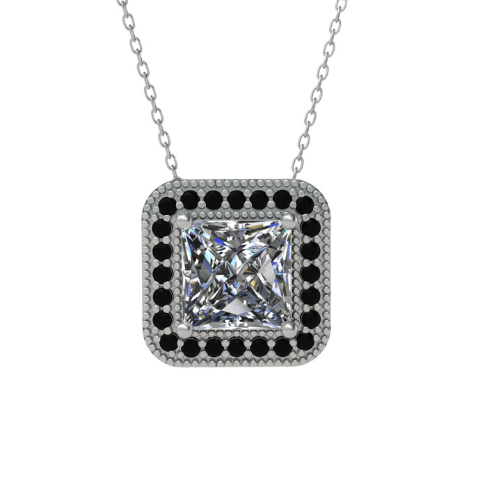Beyaz zirkon ve siyah zirkon 18 ayar beyaz altın kolye (40 cm beyaz altın rolo zincir)