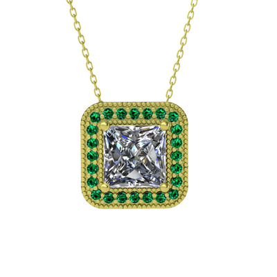 Beyaz zirkon ve yeşil kuvars 925 ayar altın kaplama gümüş kolye (40 cm gümüş rolo zincir)