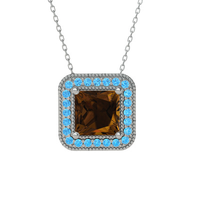 Dumanlı kuvars ve akuamarin 925 ayar gümüş kolye (40 cm gümüş rolo zincir)