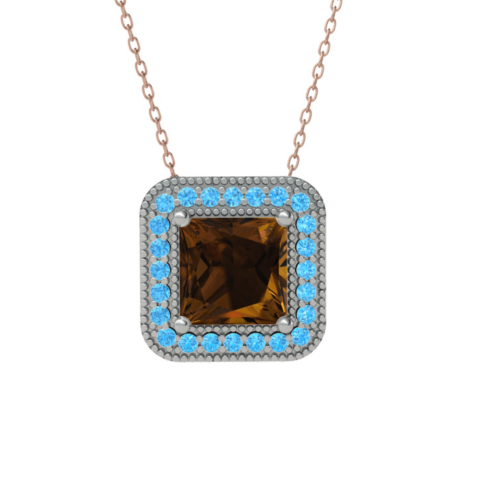 Dumanlı kuvars ve akuamarin 925 ayar gümüş kolye (40 cm rose altın rolo zincir)