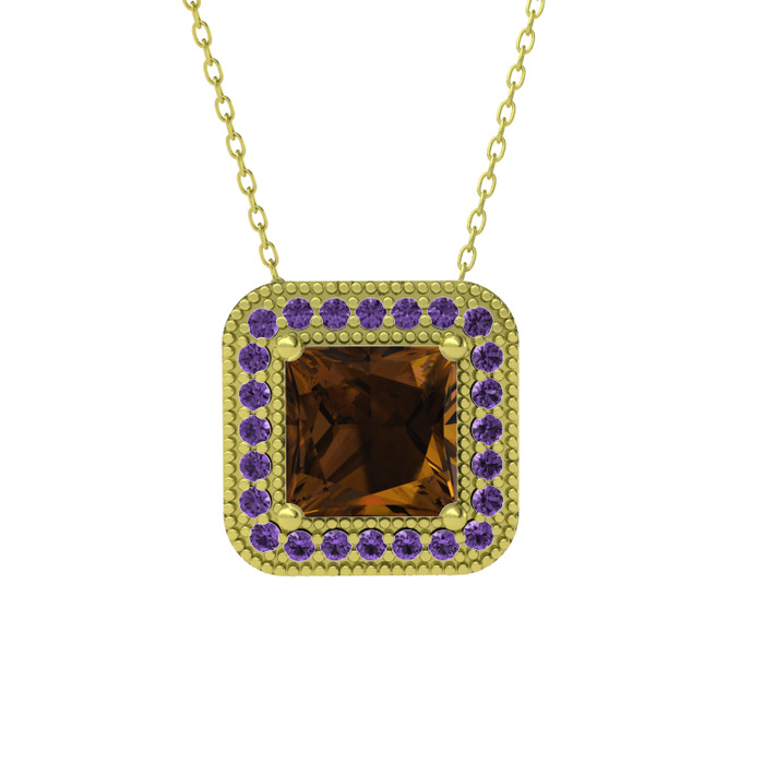 Dumanlı kuvars ve ametist 14 ayar altın kolye (40 cm altın rolo zincir)
