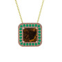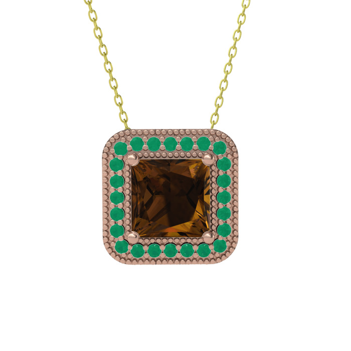 Dumanlı kuvars ve kök zümrüt 8 ayar rose altın kolye (40 cm altın rolo zincir)