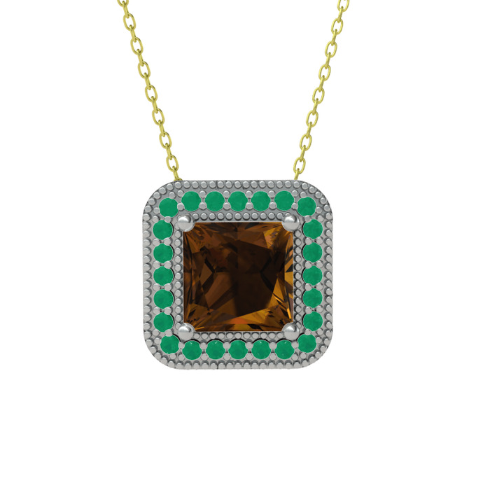 Dumanlı kuvars ve kök zümrüt 925 ayar gümüş kolye (40 cm altın rolo zincir)
