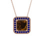 Dumanlı kuvars ve lab safir 14 ayar rose altın kolye (40 cm rose altın rolo zincir)