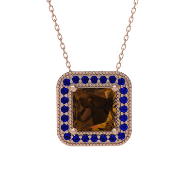 Dumanlı kuvars ve lab safir 8 ayar rose altın kolye (40 cm rose altın rolo zincir)