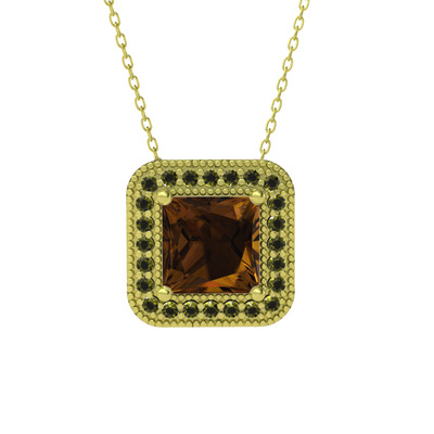 Dumanlı kuvars ve peridot 14 ayar altın kolye (40 cm altın rolo zincir)